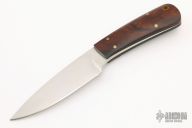 This Utility by Dean Roath features a hand rub satin finished blade with .187" blade stock and 1.090" blade depth, full tapered tang construction. The handle has ironwood scales with black liners and brass pins. Comes with original box and card. Excellent condition.