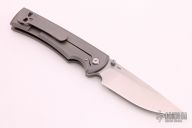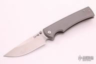 This Chaves Ultramar Liberation Drop point features a satin finished blade with the Chaves logo. The handle is made up of tumbled titanium, skull pocket clip (positioned for tip up carry), and a matching titanium backspacer. Comes with original box. Excellent condition.
