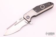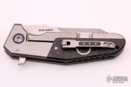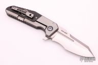 This Pocket Rocket by Shane Sibert features a hand rub satin finished blade with notched thumbrest and flipper. The handle has a milled titanium bolsters, titanium hardware, carbon fiber pivot collars, tip up anodized titanium clip with roller. Rides on bearings, nice detent, lockup and blade seating. Comes with a zippered case and COA. Excellent condition.