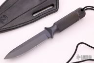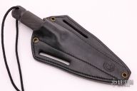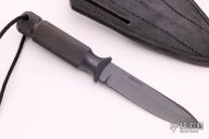 "Designed to incorporate the two basic criteria required in knives destined for hard field usage, these spear-points have plenty of blade weight and good strong points. This design has been used by soldiers all over the world who have found them to be extremely good weapons as well as rugged dependable tools. The 4” bladed Shadow III is a good everyday carry knife. " Knife and sheath are in excellent condition. The blade has a false top edge, .181" blade stock and .865" blade depth, integral construction with hollow handle. Comes with original black leather sheath by Gfeller Casemakers. Has been resharpened, has some light scuffs, otherwise excellent condition.