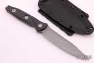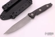 This Socom Alpha by Microtech Knives features an Apocalyptic finished blade with notched thumbrest. .164" blade stock and 1.12" blade depth, full tang construction. The handle has carbon fiber scales. The tang is notched all around and there is a lanyard hole at the butt. Comes with a kydex sheath.  Dated 12/2016. S/N 00160. Excellent condition.