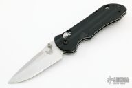 This is a Benchmade mini stryker features a satin drop point blade with dual thumb studs and a notched thumbrest. The handle features black G10 scales over steel liners and a black tip up pocket clip.  Includes the original box and papers.  Excellent Condition.