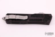 This Scarab II OTF by Microtech features a stonewashed M390 blade S/E, Black aluminum handle with a single glass breaker. Comes with original box and papers. Dated 02/2021 Serial number 1241. Excellent condition.