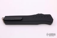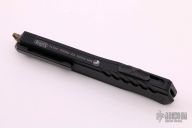 This Cypher OTF is a collaboration between Anthony Marfione and DC Monroe. It features a tan standard blade with satin flats and notched thumbrest. The handle has a black anodized aluminum handle with all black hardware and titanium tip down clip and a tan insert at the butt with lanyard hole. Comes with original box and papers. Excellent condition. 08/2018 and #0086.