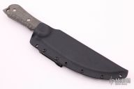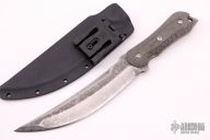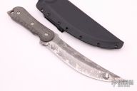 This Persian by Steve Ryan features an acid etch finished upswept blade with a notched thumbrest, .223" blade stock and 1.662" blade depth, full tang construction. The handle has black canvas micarta scales. Comes with a kydex sheath with TekLok. Excellent condition.