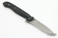 This M16 from CRKT features a bead blasted spear point blade with partially serrations and dual thumbstuds.  The handle has black FRN scales over titanium liners and a black tip down pocket clip.  Light scuffs/scratches are visible on the blade and handle otherwise the knife is in good condition.