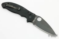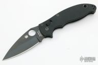 This Spyderco Manix 2 has a black blade with thumbhole and notched thumbrest. The handle has a black G-10 scales over black stainless steel liners, tip up reversible black stainless steel clip. Lanyard tube in pommel. Includes a Spyderco box. Includes a set of Flytanium scales. Excellent Condition.