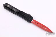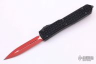 This Ultratech OTF automatic by Microtech features a D/E red blade. Black aluminum contoured frame with black tip down stainless steel clip. Dated 07/2021 and s/n 5238. Excellent condition. Includes original box and papers.