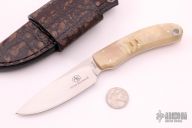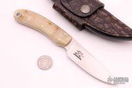 "I made my first knife in 1978 out of a saw blade, at that time I was a teacher at a technical school. I started making knives on a regular basis in 1991 and became a full time maker in 1996. I like to work with different ivory (legal), especially mammoth and warthog ivories. I work with steels like ATS34, 12C27, Damasteel and other Damascus. I live in South Africa and did my first show in the USA in 1996 and visit the States to do about 8 shows per year. I have been a member of the South African Knifemakers Guild since 1994. I make fixed blades as well as folders."