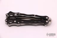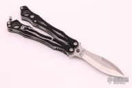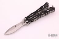 This Spyderfly Balisong by Spyderco has a satin finished spear point blade with false top edge. Handle is black G10 over stainless steel liners and stainless steel paper-clip style pocket clip. Comes with original box and papers.  Excellent condition.