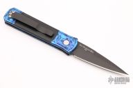 This Godson from Pro-Tech knives features a black spear point blade with swedge. The handle is comprised of a "Jazz" aluminum frame with black G-10 scales, stainless steel tip up pocket clip. Nice blade seating, action and lock up. Has a couple light scuffs on the clip, otherwise excellent condition. Includes a Pro-Tech box and paperwork.