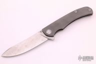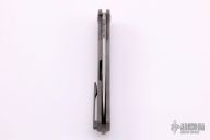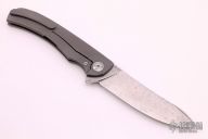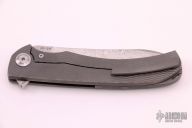 This Freeze from Alexander Cheburkov features a drop point ZDP 1016 Damascus blade with swedge, notched thumb rest and flipper. The handle is comprised of an anodized and milled titanium frame with matching tip up clip and backspacer. Great blade seating, detent and lock up. Excellent condition. Dated 2020