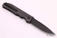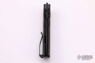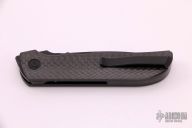 This Miura is a Gareth Bull design produced by MassDrop, it features a black tumble finished blade with false top edge, notched thumbrest and front flipper. The handle has carbon fiber scales, black titanium liners, carbon fiber backspacer, tip up titanium clip with hidden screws. Rides on bearings, nice detent, lockup and blade seating. Excellent condition.