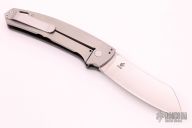 This Haddock Framelock is a Jens Anso design produced by Boker, it features a hand rub satin finished blade with nail nick. The handle has a zirconium and satin finished titanium frame with stainless steel tip up clip. Nice detent, lockup and blade seating. Has some scratches, otherwise good condition. #116/199