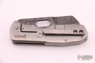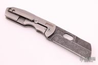 This Karook Prototype #3 by Kingdom Armory features a dark tumble finished blade with thumbhole. The handle has a tumbled titanium frame with matching backspacer and tip up clip. Nice detent, lockup and blade seating. Excellent condition.