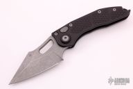 This Stitch Auto by Microtech Knives features an Apocalyptic finished blade and false top edge, notched thumb and finger rests. The handle has a black anodized and milled aluminum handle with a bead blasted titanium backspacer and a bead blasted stainless steel clip, tip up carry, lanyard hole at the butt. Comes with original box and papers. S/N of 6144 and dated 02/2021. Excellent condition.