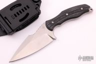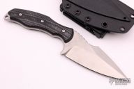 This SB1 by Fox Cutlery is a Borka Blades design, it features a stonewashed blade with false top edge and notched thumbrest, .202" blade stock and 1.671" blade depth, full tang construction with black canvas micarta scales. Comes with kydex sheath with belt clip and original box. Excellent Condition.