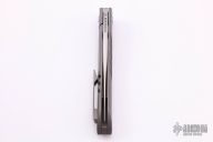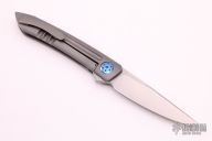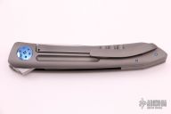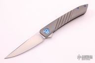 This model of the Alliance Designs Kevin Foster Anchovy features a gray blasted titanium handle with a groove pattern and blue anodized hardware. Alliance Designs has teamed up with knife maker Kevin Foster to create the Anchovy, a flipper knife that is based on his custom model of the same name. It features a satin finished blade made from RWL-34 stainless steel. This slim EDC knife sports an over-sized titanium pivot with matching body screws. The pocket clip is set for tip-up, right hand carry. Features: Hollow ground RWL-34 stainless steel blade provides excellent edge retention and slicing abilities. Smooth contoured titanium handle is comfortable in hand. Item includes a titanium pocket clip with hidden screws to keep a clean aesthetic. New from maker.