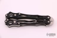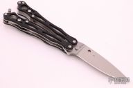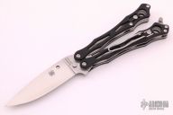 This Spyderfly 2 Balisong by Spyderco has a satin finished blade. Handle is black G10 over stainless steel liners and stainless steel paper-clip style pocket clip. Comes with original box. Excellent condition.