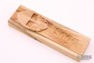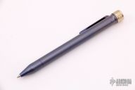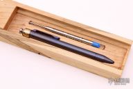 This Custom Saga pen from Grimsmo features titanium components, tumbled tube anodized. Custom made wooden case and extra ink insert included. Excellent condition.