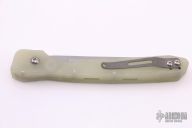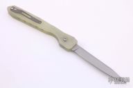 This WASP from Rob Dalton features a bead blasted clip point blade, translucent G-10 handle and a bead blast titanium clip, tip up carry. Strong coil spring opening. Excellent condition. Comes with original box.