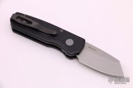 The Runt 5 by Pro-Tech Knives features a tumbled sheepsfoot style blade. The handle features a black milled aluminum handle with a black tip up stainless steel pocket clip. New from maker!