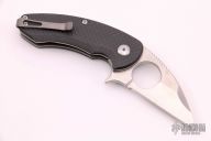 "Jason Brous began his efforts in knifemaking with the benefit of nearly 10 years of experience in CNC machining. His father owns a shop that specializes in the custom machining of high-precision components, mainly for the medical industry. Jason spent a lot of time in his father’s shop while growing up, and by his mid teens was actively helping out with production. His skills and knowledge steadily increased and by the time he was 20 he was a seasoned and very competent machinist. Jason's interest in knives actually began with art - specifically a style called “Bio-mechanical” - as practiced by one of his favorite artists, a Brazilian painter and tattooist named Lango. Biomechanical art (also called Biomech) is a surrealistic style of art that combines elements of machines and robotics with organic animal features. Intrigued by this style of art and its similarity to many fantasy knives, Jason figured that knifemaking would be a natural extension of his metalworking skills and an appropriate medium for his artistic ideas. Although he had no specific training in knifemaking, in 2010 he designed and made his first knife - a fantasy design with a Biomech flavor. Through persistent trial and error, Jason changed his style of knife design to focus on functional simplicity, while still maintaining a strong artistic signature. His early successes came in the form of a series of stout neck knives with dual finger-hole grips. Fans of these “Silent Soldier” neck knives began asking for other expressions of the design. Since then, Jason has created numerous variations including a clip point version, a tanto version and the very popular folder version called the Silent Soldier Flipper."