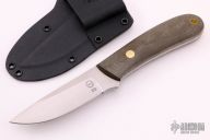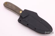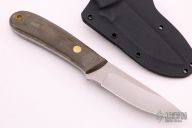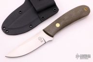 This K-16 Yukon Pro Skinner by Dozier Knives features a satin finished blade with .137" blade stock and 1.018" blade depth, full tang construction. The handle has green canvas micarta scales with brass pins and lanyard hole. Comes with kydex sheath with belt clip. New from maker.