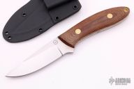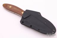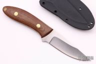 This K-56 Evo Hunter by Dozier Knives features a satin finished blade, .135" blade stock and 1.112" blade depth, full tang construction. The handle has brown canvas micarta scales with brass pins and lanyard hole. Comes with kydex sheath with belt clip. New from maker.