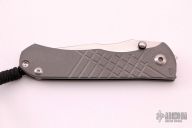 This Unumzaan from Chris Reeve Knives features a tanto style stonewashed blade with dual thumb studs and notched thumbrest. The handle is comprised of bead blasted and milled titanium with matching tip up clip. Lanyard pin with lanyard and spacer bead in pommel. Comes with original box and COA dated April 27, 2020. Excellent condition.