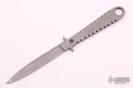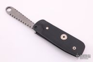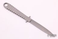 This knife by Crawford Knives a bead blasted blade with integral guard, .182" blade stock and .493" blade depth, integral construction. Comes with a kydex sheath. Has some sheath scuffs, otherwise good condition.