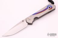 This Large Sebenza 21 by Chris Reeve Knives features a satin and tumble finished blade with notched thumbrest and single titanium thumbstud. The handle has a titanium frame with unique graphic, titanium lanyard pin. Comes with original box, sheath and papers dated August 23rd, 2018. Excellent condition.