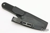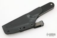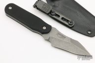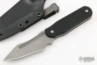 This Nighthawk 2 by Jason Stout features a tumbled chisel ground blade with a fuller, notched thumbrest and sharpened top edge, .169" blade stock and 1.203" blade depth, full tang construction. The handle has black G-10 scales. Comes with a kydex sheath with Ulti-Clip. Excellent condition. Comes with a COA dated 2-29-20
