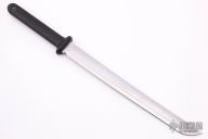 This TNT-15 by Scrap Yard Knives has a Shallow Hollow Bevel featuring our Busse's CBT (Corrugated Bevel Technology) which allows for more clearance behind the edge. The Resiprene C handle has a proven track record of over 23 years with no end in sight! Resiprene C is well known for its high durability, shock-absorbing, and slip-resistant qualities. The TNT-15 weighs in at approx. 22.9 oz. The oval handle has flats on top and bottom which assist in edge indexing in all conditions. This one has the "Raw Dog" finished blade, .249" blade stock and 1.368" blade depth, hidden tang construction. Excellent condition.