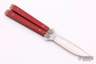 This Early Model 1 Balisong by Les Voorhies features a satin finished blade. The handles have red G-10 scales, anodized and textured titanium liners and black G-10 backspacers. Rides on IKBS. #16 on blade. Excellent condition.