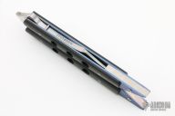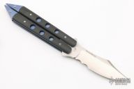 This knife was designed by Hank Greenberg and made by Les Voorhies and is a Prototype. Has a satin finished Scimitar blade with false top edge and partial serrations. The handle has carbon fiber scales, anodized titanium liners and stainless steel spacers. Excellent condition. "PROTOTYPE" on the blade spine and #27 on the ricasso.