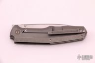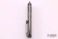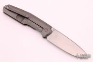 This framelock was designed by Philippe Jourget and manufactured by CKF. This knife features a satin finished drop point blade with a file worked thumb rest. The handle has a tumbled titanium frame with a matching backspacer and tip up pocket clip.  Includes a COA and a padded zippered case.  S/N 189. Dated 8/21.  Excellent Condition.