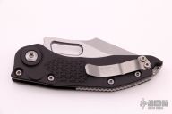 This Stitch Auto by Microtech Knives features a stonewash finished blade and false top edge, notched thumb and finger rests. The handle has a black anodized and milled aluminum handle with a bead blasted titanium backspacer and a bead blasted stainless steel clip, tip up carry, lanyard hole at the butt. Comes with original box and papers. S/N of 6700 and dated 06/2021. Excellent condition.