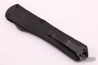 This Manticore-X by Heretic Knives features a DLC double edged blade with one fully serrated edge. The handle has a black aluminum frame with black stainless steel hardware and tip down clip. Comes with original box and papers. S/N 01365. Has scuffs and scratches, has been used and resharpened, good user condition.