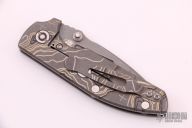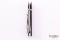 This TAD Dauntless Compact Hinderer features a matte finished spear point blade with fullers, notched thumbrest, and dual thumbstuds. The handle has a black G-10 front scale with 3 milled fullers, matte finished titanium frame with matching tip up clip. This knife features the Tri-Way pivot system. Has scratches and some oxidation, otherwise good condition.
