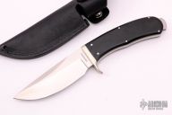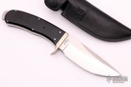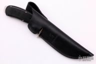 The Browning Expedition Combo features a AUS-8 stainless steel blade and a nickel silver guard with black paper micarta scales. The handle holds a smaller folding knife inside, and the larger knife features stainless steel pins and a finger guard. The Knife also comes with a black leather sheath with a belt loop and original box and papers. Excellent condition.