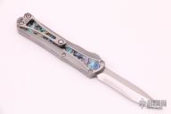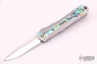 This Manticore S by Heretic Knives features a recurve mirror polished blade. The handle has a two-tone stainless steel frame with abalone inlays, stainless thumb slide and a tip down stainless steel clip. Comes with original box, zippered case and COA dated 7/20 and s/n 007. Excellent condition.