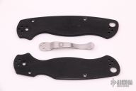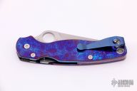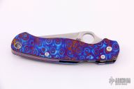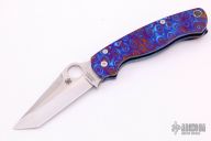 This Paramilitary 2 Linerlock Folder from Spyderco has a satin finished tanto blade with thumbhole and notched thumbrest. Handle has Custom MokuTi Flytanium Scales with stainless steel liners and an anodized titanium deep carry 4-way reversible clip. Comes with original box, scales, clip and papers. Excellent condition.