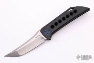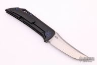 The Wingman EDC Yurei is an ultra-high end production knife with lots of little features a true enthusiast will appreciate. The stylish David Santiago design keeps a low profile and doesn't call too much attention to itself, but retains a unique beauty that will surely impress. The handle is made of titanium, precision milled to exacting standards for a early lockup from the lockbar, no blade play, and handle construction that looks almost integral. The trailing point blade is made of Bohler M390, and deploys smoothly thanks to the Lee Williams KickStop flipper and the ceramic ball bearing pivot. As a final touch, the knife has a custom propeller pivot.