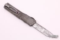 This Twist Tighe OTF by Brian Tighe features a tanto Damacore multi-ground blade. The handle has a milled and DLC coated tumbled titanium front, Damasteel back, tip up mokuti clip with ruby ball insert, has ruby ball insert in the butt as a glass breaker, has a carbon fiber thumbslide. Comes with a zippered case. Excellent condition.