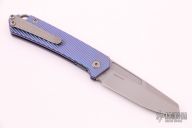 This OEM Slim is a Richard Rogers Design and features a bead blasted blade. The handle is milled and anodized titanium with blasted titanium backspacer, hardware and tip up clip. Nice detent, lockup and blade seating. Comes with original packaging and brown leather slip sheath. New from maker.