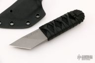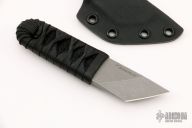 This Kiridashi by Ben Tendick of BRT Bladeworks features a bead blasted blade.  .151" Blade Stock.  1.014" Blade Depth. The handle has a Japanese style wrapped handle over a black epoxy soaked hemp under wrap. Includes kydex sheath and COA. New from Maker.