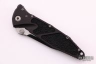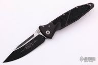 This Socom Elite from Microtech has a black/satin blade with dual thumbstuds and notched thumbrest. The handle has a black aluminum frame with non-slip rubber inserts and a tip down stainless steel clip. Dated 07/2018 and S/N 1940. Includes original box and paperwork. Excellent condition.