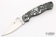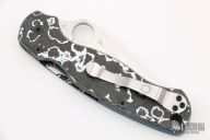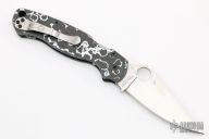 This Paramilitary 2 Linerlock Folder from Spyderco has a satin finished clip point Rex45 blade with thumbhole and notched thumb rest. Handle has custom fat carbon scales with nested stainless steel liners and stainless steel clip, custom black hardware. Comes with original box, orange G-10 scales, hardware and papers. Excellent condition. Comes with original orange G-10 scales.
