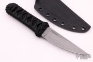 This Compact Aikuchi from Ben Tendick of B.R.T. Bladeworks features a tumbled kwaiken style blade with swedges. .202" Blade stock 1.107" Blade Depth. The handle has a Tsuka Ito wrap over a epoxy soaked hemp cord underwrap. Includes kydex sheath and C.O.A.  New from maker.